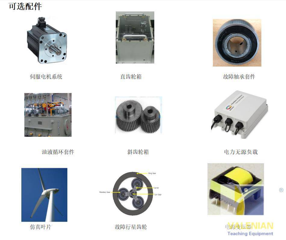 WTS1000除了能夠模擬低速齒輪故障和異常振動外,還可以模擬常見的機(jī)械故障特征。它主要由葉片低速級(伺服電機(jī)驅(qū)動),行星齒輪箱,平行齒輪箱和發(fā)電機(jī)組成。它可以檢測低速軸承的缺陷,以及高速行星齒輪和平行齒輪的故障。它旨在通過模擬風(fēng)力渦輪發(fā)電機(jī)等低速設(shè)備的機(jī)械故障,來學(xué)習(xí)相關(guān)的故障檢測技術(shù)。這是一個可靠的學(xué)習(xí)平臺,能讓您學(xué)習(xí),檢測及分析風(fēng)力渦輪發(fā)電機(jī)的故障特點。其可應(yīng)用于各種領(lǐng)域,例如研究風(fēng)力渦輪發(fā)電機(jī)振動的、振動培訓(xùn)機(jī)構(gòu)、以及設(shè)備振動分析和故障診斷部門的技術(shù)人員,都是的實驗裝置。