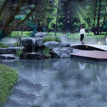 在設(shè)計(jì)師的巧手之下,這些黑石被賦予了新的生命,成為了庭院中的一道亮麗風(fēng)景線(xiàn)。 在園林造景中,置石的藝術(shù)不容忽視。它不僅僅是簡(jiǎn)單的擺放,更是對(duì)空間、形態(tài)、色彩、紋理的深刻理解和巧妙運(yùn)用。